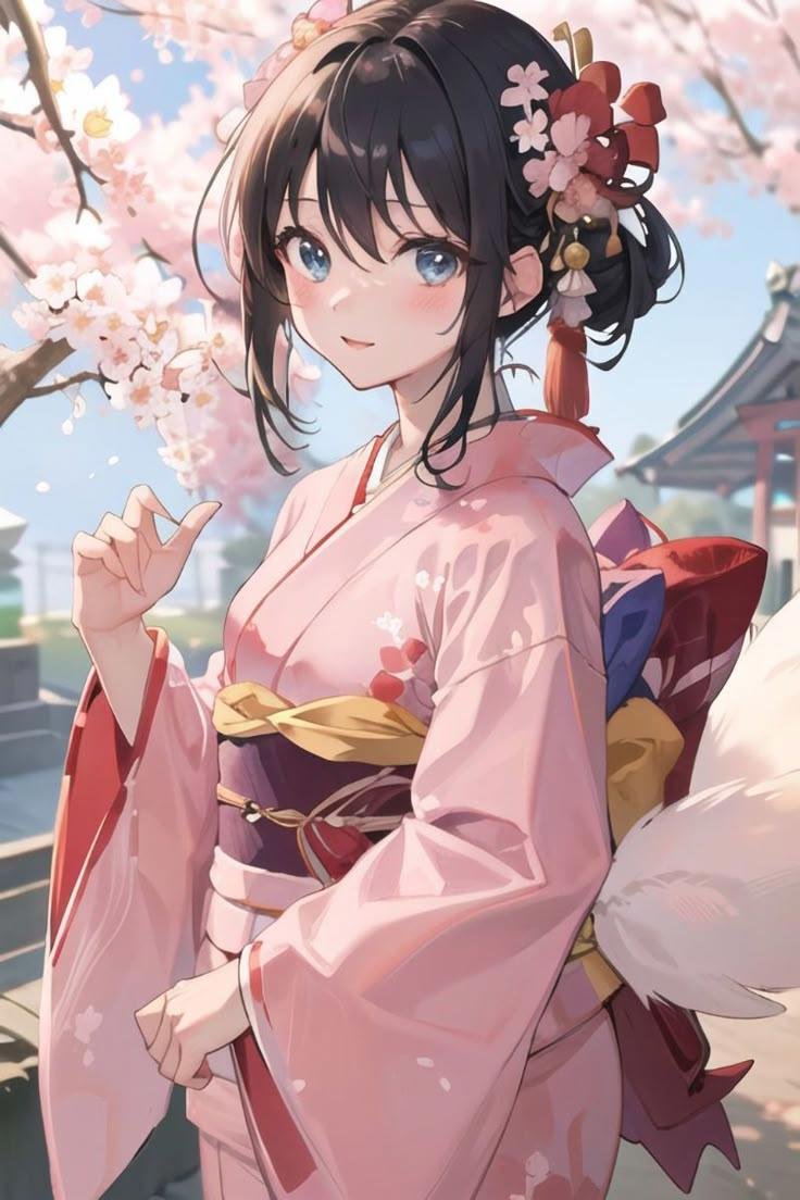 - Anime kimono tinh tế và dịu dàng