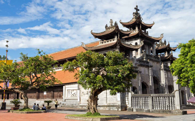 Một điểm nhấn khác trong danh sách danh lam thắng cảnh Ninh Bình là Nhà thờ đá Phát Diệm – công trình kiến trúc độc đáo kết hợp giữa phong cách châu Âu và Á Đông. Nhà thờ được xây dựng hoàn toàn bằng đá và gỗ, với những đường nét chạm trổ tinh xảo, mái cong uyển chuyển như ngôi chùa Việt cổ. Đây không chỉ là nơi hành lễ tôn nghiêm mà còn là điểm đến thu hút đông đảo du khách bởi vẻ đẹp hài hòa giữa tín ngưỡng và nghệ thuật.