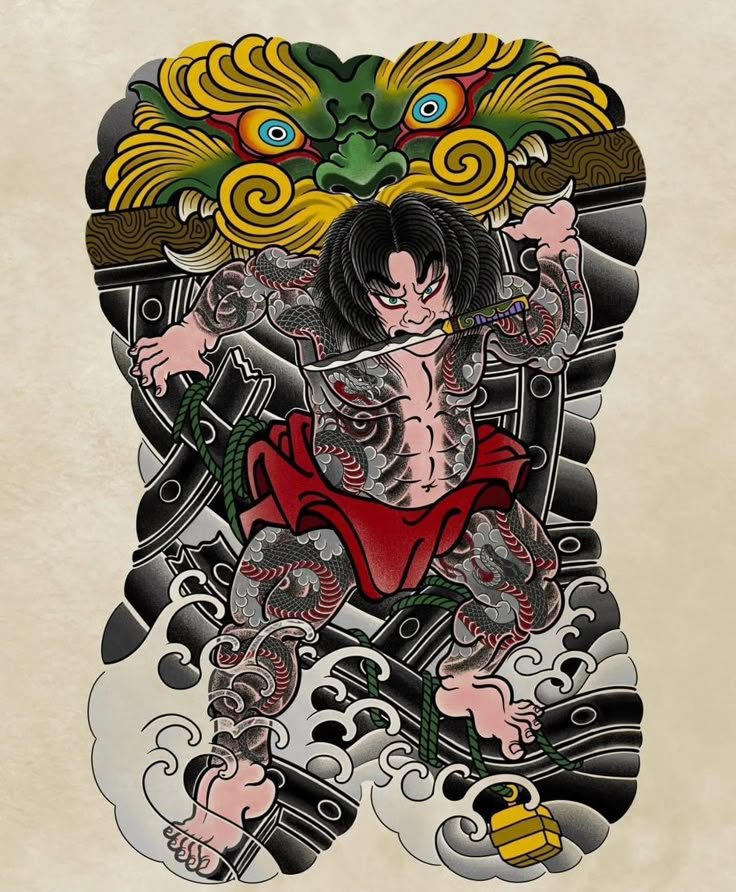 - Hình xăm Nhật cổ full lưng mạnh mẽ