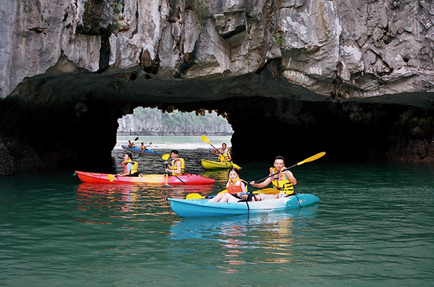 Một trong những hoạt động thú vị nhất tại Vịnh Lan Hạ chính là chèo kayak. Khi tự tay điều khiển chiếc thuyền nhỏ lướt qua các hang động, du khách sẽ cảm nhận được sự kỳ diệu của thiên nhiên. Có những hang chỉ đủ cho một chiếc kayak đi qua, ánh sáng len lỏi qua những khe đá tạo nên khung cảnh huyền ảo. Những điểm nổi tiếng như Hang Sáng – Hang Tối hay khu vực đảo Khỉ đều là nơi du khách có thể trải nghiệm cảm giác vừa phiêu lưu vừa bình yên.